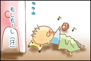 ころんしてピカチュウを枕にタオルを抱きしめるハル君。「えー!ちょっと、ここは脱衣所だよ!」そしておもむろに、さっき持ち込んでいた太鼓の音楽が鳴るボタンを押して、