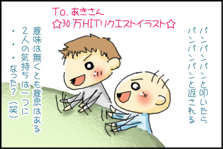 もっと一緒に遊べるようになったら良いね♪って言うか、いつもの画風だと見分けつかなくて、あんまり似顔絵にならないね、ごめん(大汗)